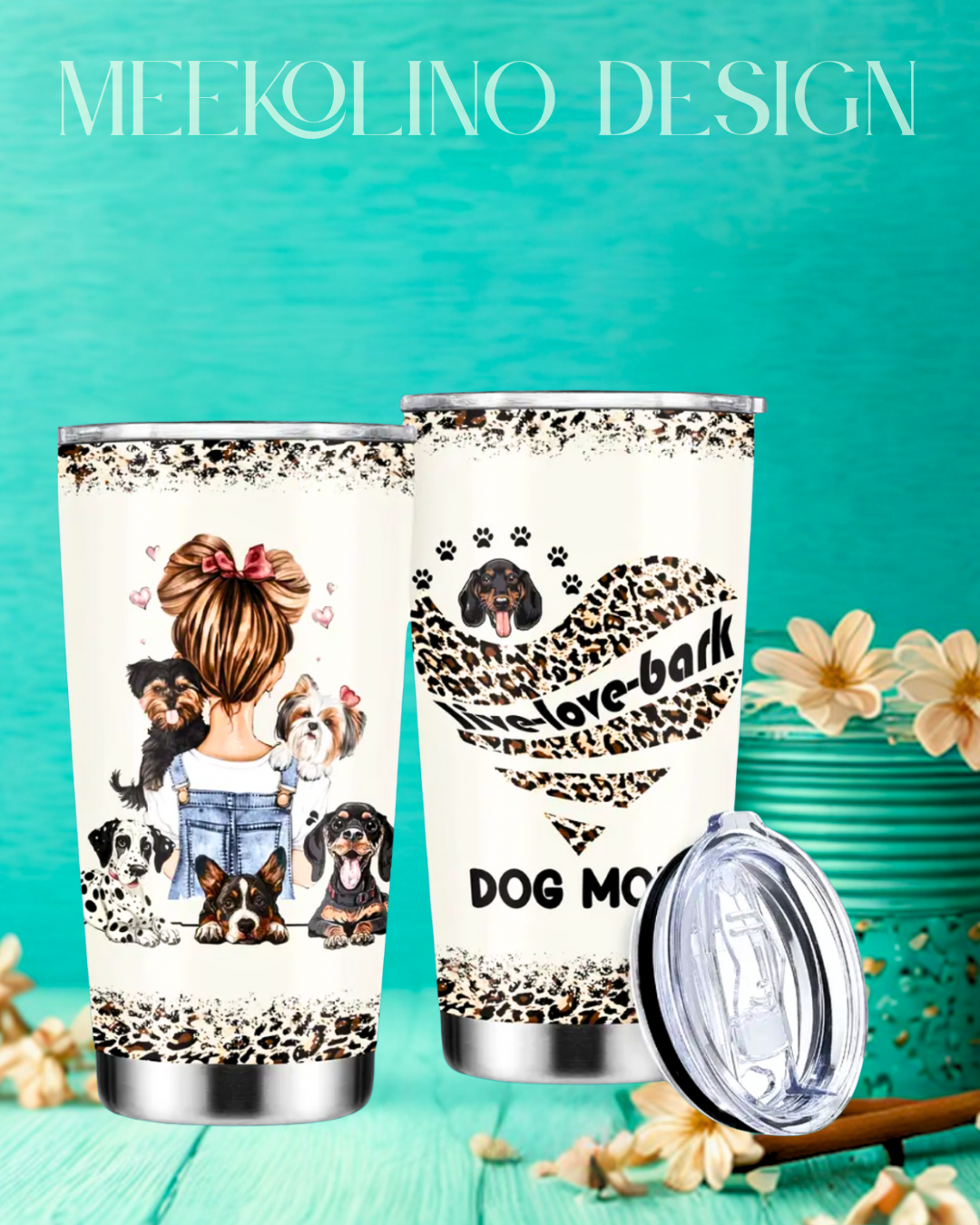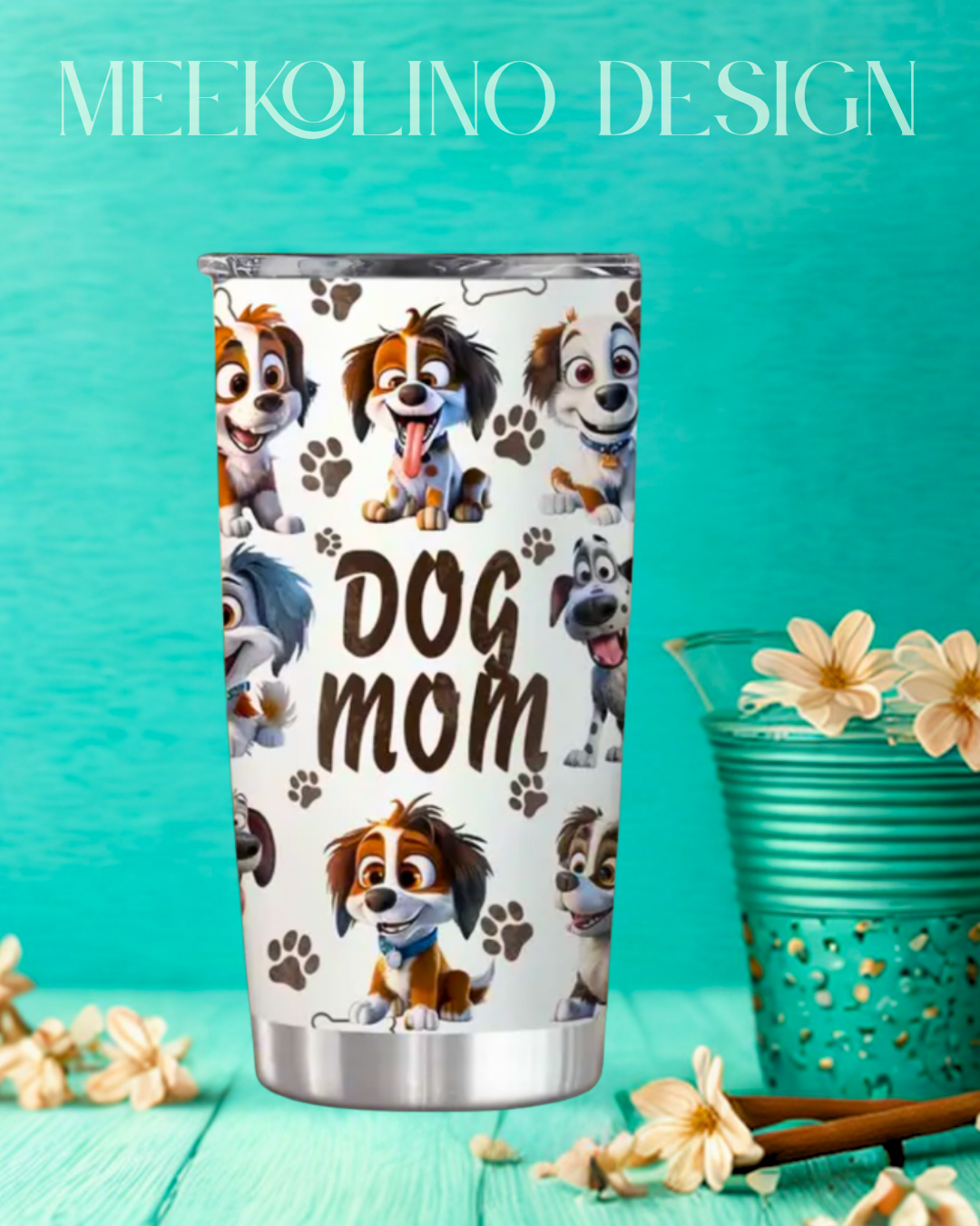20oz Edelstahl Isolierbecher, Auslaufsicherer Reisebecher für heiße (6 Std.) & kalte (12 Std.) Getränke, Doppelwandig mit niedlichem Hundemama-Druck, BPA-frei, besser ist nur Handwäsche.