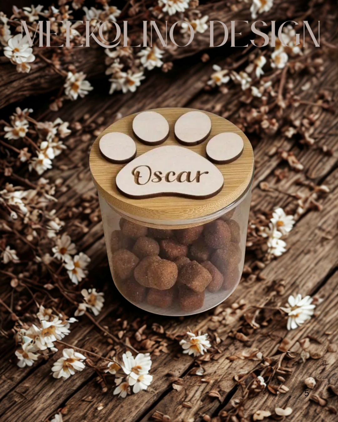 Leckerli-Glas mit Holzpfoten-Deckel zum Personalisieren